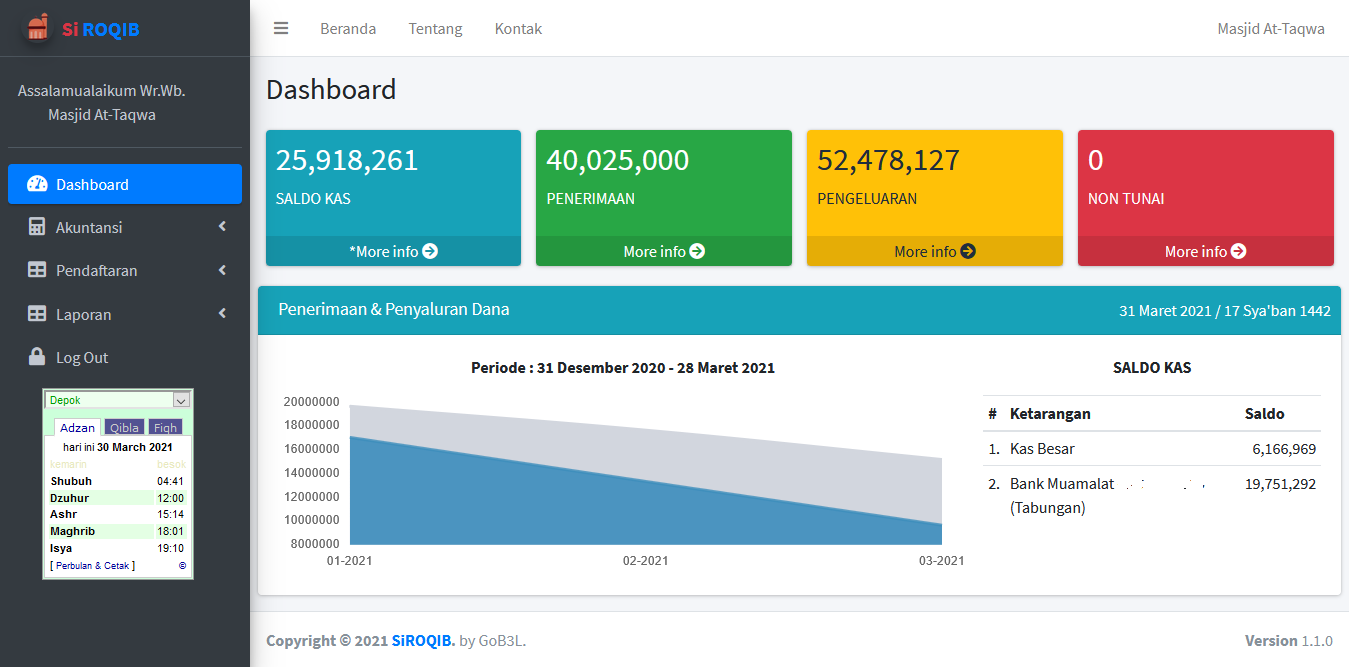 SiROQIB membantu para pengurus Masjid / Mushola untuk melakukan pencatatan keuangan secara sistimatis sesuai kaedah Akuntasi (PSAK).