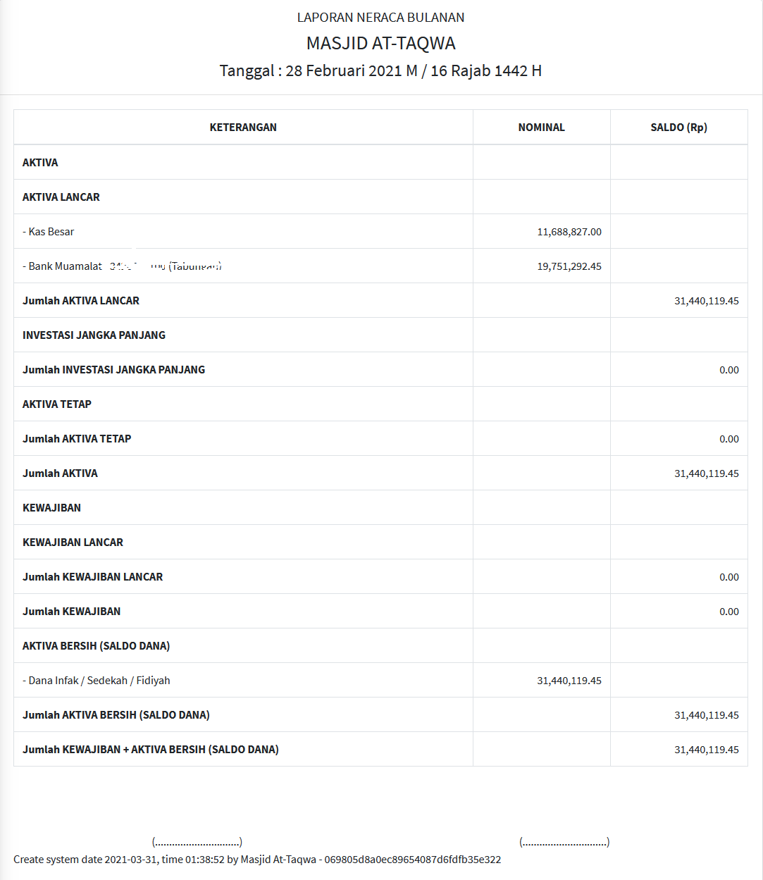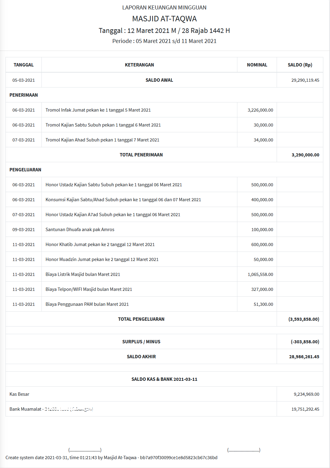 Sistem Informasi Pencatatan Keuangan Masjid.